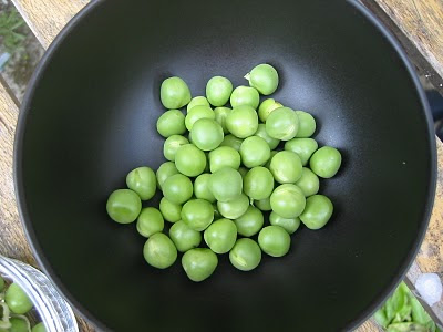 I bought a bag of three huge bunches of radishes, perfect because the recent hot weather has driven all the home grown crops to seed, a huge bag of peas in the pod, ideal because I was so late planting this year my peas are still flowers and a bag containing about 5kg of ripe bananas, a crop that the Normandy weather usually precludes. And all for less than 5€.